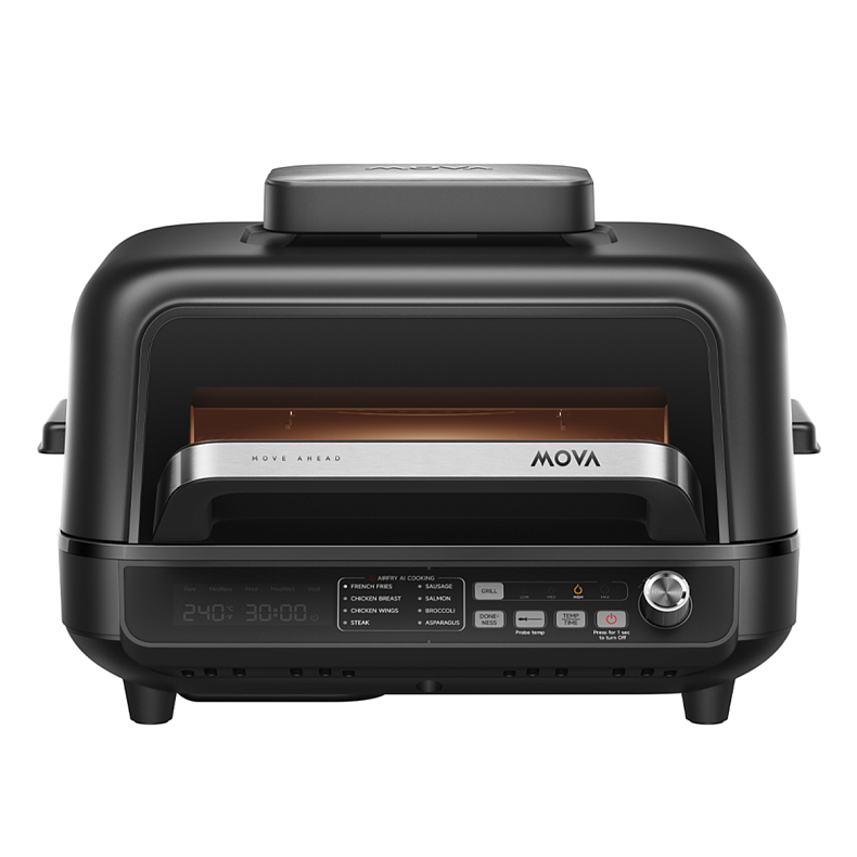 Багатофункціональний гриль та аерофритюрниця MOVA versaMaster G20 Pro поєднує в собі гриль, сковороду, аерогриль та аерогриль з технологією Airpowered Canary Intelligence. Його поверхня розміром 14x9 дюймів обробляє кілька інгредієнтів, а верхній та нижній нагрів забезпечують рівномірне приготування. Точний контроль температури спрощує приготування, а оглядове віконце дозволяє спостерігати за кожним моментом приготування. Гриль має знімні пластини для зручного догляду.