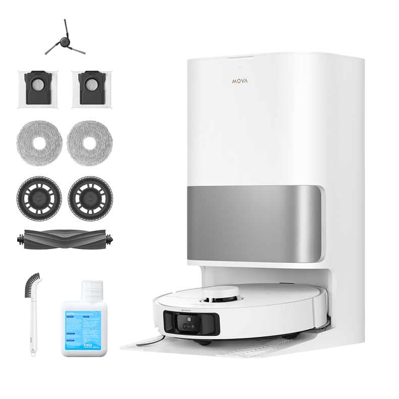 MOVA P10 Pro Ultra поставляется со всем необходимым для мгновенного запуска и эффективной работы. Все аксессуары легко устанавливаются и помогают поддерживать чистоту в доме без дополнительных затрат на дополнительные комплектующие. Вы получаете готовый к работе робот-пылесос со всем необходимым для сухой и влажной уборки. Комплектация MOVA P10 Pro Ultra: